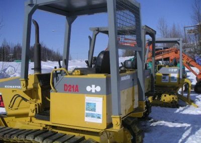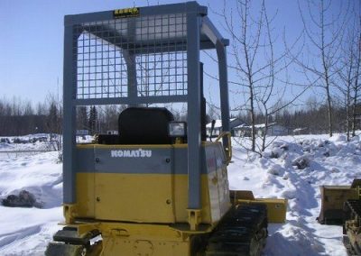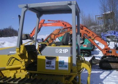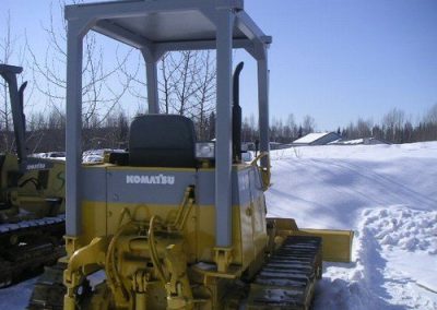 The Komatsu D21/20 and some D31 bulldozers came with a fiberglass rain canopy installed which can be replaced by either a ROPS or Utility canopy. Utility canopies and brackets are slightly lighter than the ROPS canopy and do not have a certification tag but are less costly.There is also a heavy duty utility canopy available which has a heavier steel construction, heavy brackets and rear screen. These canopies are built to order and shipped from Oklahoma. Brackets bolt on and then the frame is welded to the bracket as shown.