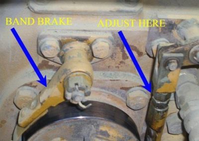 Almost all the bulldozers with the direct drive transmissions could benefit from some fine tuning of the band brake that stops the drive shaft from spinning when you depress the clutch. The factory manual recommends a shaft spin time of 2-3 seconds but I think that is too much time and prefer to have the shaft stop spinning in one second in order to make a quick grind-less shift.