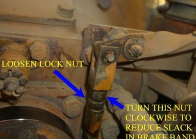 Do not tighten too much as you will cause a brake drag on the disk and quickly overheat and damage the lining and disk. Watch that the disk spins freely when you shut off the engine and visually check the temperature of the disk after running free for some time to see if it is getting hot. Don’t touch it or you will burn your finger. Always do this check and back off the adjust if it is dragging and causing overheating.